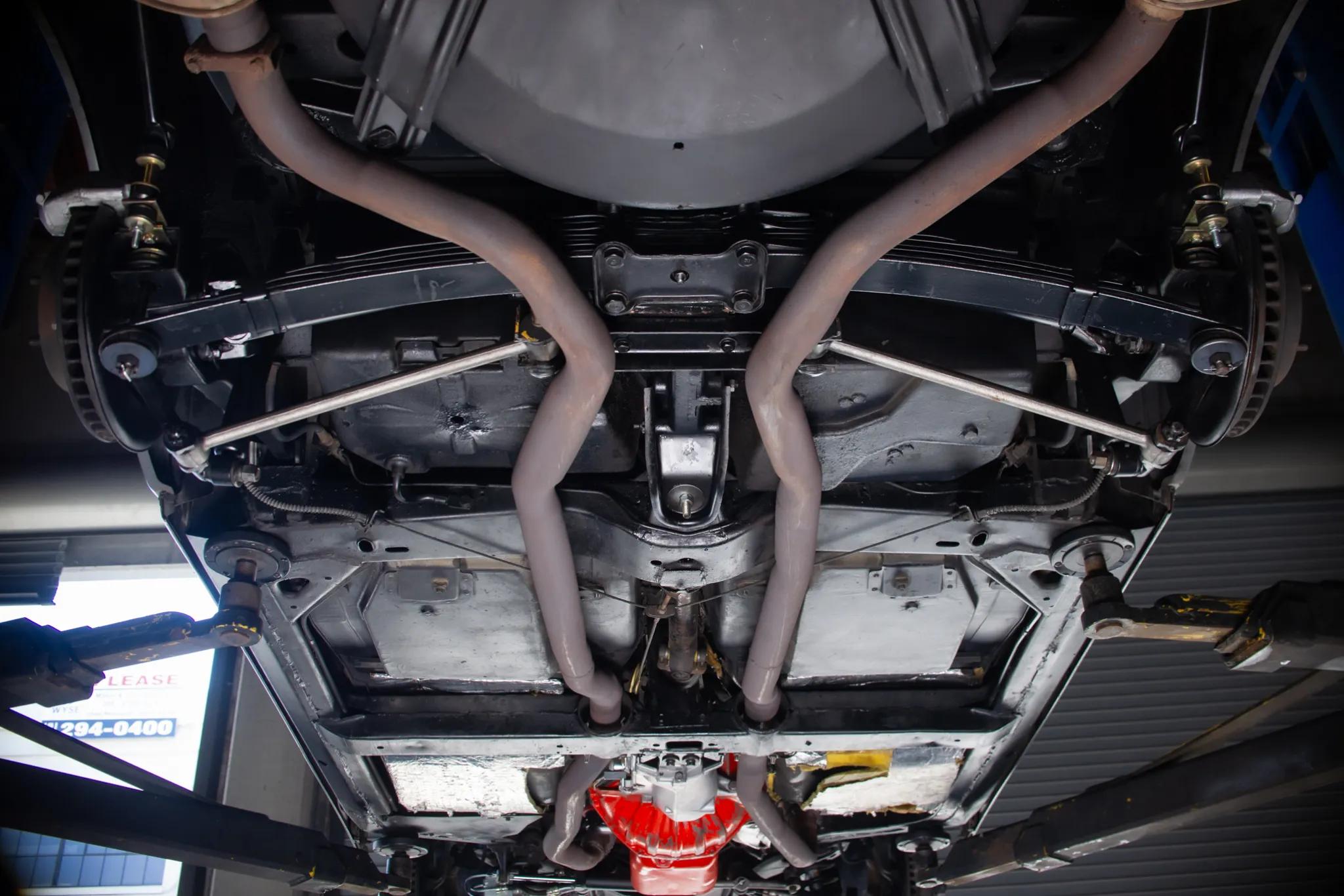 Silver-painted 15" Rally wheels feature stainless steel hubcaps and trim rings and are mounted with BFGoodrich Silvertown redline tires. Braking is handled by discs at each corner.